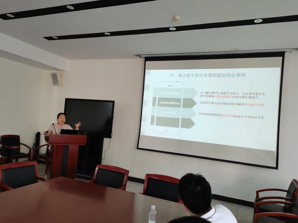 湖北省省级线上线下一流课程负责人阎春兰副教授介绍了《微生物学》一流课程建设的历程、课程建设的特色和亮点、课程申报的要求和今后课程建设进一步改进的地方。