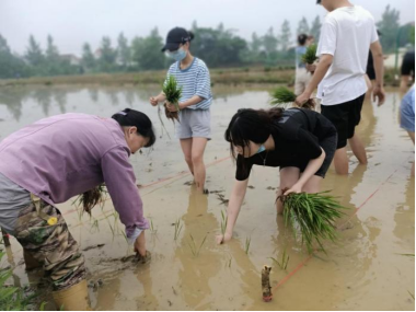 活动前,王春台向学生讲解了农田插秧的基本要点、技术要领,并对下田的注意事项作了提醒。在老师和实践基地工作人员为的示范带领下,学生纷纷挽起裤腿,深入田间开始插秧。尽管泥巴弄脏了衣服,汗水顺着脸颊不断流下,但所有学生仍然十分默契地低着头、弯着腰,按照老师的指导一株一株地将手上的秧苗插进水田。看着整齐的秧苗在田地里树立起来,学生的喜悦之情溢于言表。“谁知盘中餐,粒粒皆辛苦”。学生在亲近大自然的欢乐中学习农耕文化,体会到了劳动的辛苦与喜悦,也加深了对所学知识的理解。