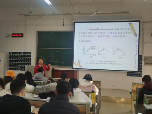 2021年12月2日上午,根据学校“课程思政”示范课程建设要求及计划,《微生物学》课程思政建设示范课公开课在11号楼104教室进行,阎春兰老师进行公开示范授课,院督导、学院教师代表和学生到场观摩。