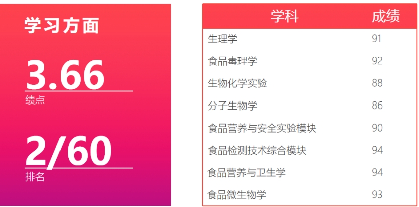 日日行不怕千万里,天天讲不吝千万言,时时做不惧千万事。众所周知,保研是一件非常困难的事情。想要获得保研资格,得在学习成绩和科研经历方面获得成就,特别是学业成绩方面,在保研综合成绩中占比85%。成绩是一枚定海神针,成绩排名靠前,保研便成功了一大半。对于李献婷来说,保研这条路是偶然也是必然。专业排名第二,科研经历丰富的她,在老师的引领下走上了保研之路。保研路上困难重重,有风雨是常态,风雨兼程是状态,风雨无阻是心态。每天坚持背单词、刷题、查阅资料,李献婷最终克服了学业上的困难。保研面试又是一大难点。专业问题、简历上相关问题,考验着我们的专业能力和临场反应能力。克服这些困难,需要平时的锻炼和学习。