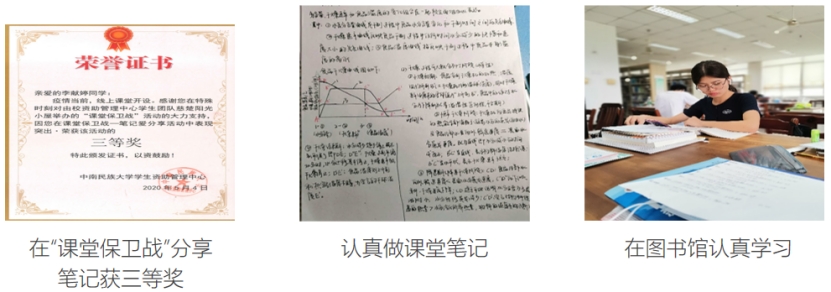 “立身以立学为本,立学以读书为本。”对待学习,她秉承着一丝不苟、刻苦钻研的精神。“学习真的非常重要!千万不要挂科!”她多次强调这一点。课堂上认真听讲,积极与老师配合,踊跃回答老师的问题。课下会解决疑难问题。临近期末,她会认真复习老师所划重点,有时也会打印资料,巩固所学内容。“我的高数老师是一名女老师,她让我意识到女生在数学方面不一定比男生差。”李献婷对高数有很大的兴趣,也取得了不错的成绩。图书馆对她来说是温暖的港湾,在那个学习氛围浓厚的环境中,看书也会更加专注。