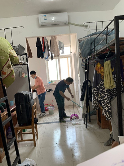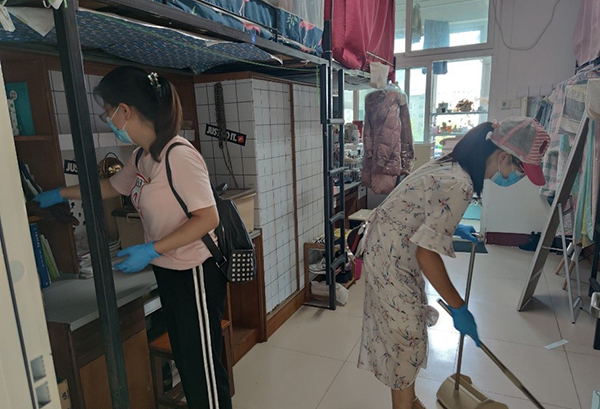 工作中,老师们老师们按照全覆盖、无死角、不遗漏,对学生宿舍逐一进行了打扫清洁和通风除味,将同学们的物品整理好,将床帘放下,清理宿舍垃圾、擦拭书桌,用爱心服务学生,为即将返校的同学门创造了良好的学习生活环境。