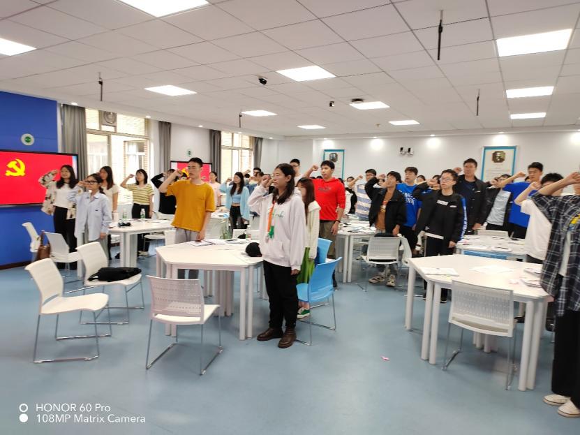 在方文杰的带领下,全体毕业生党员重温了入党誓词。同学们高举右拳,庄严宣誓,牢记党的宗旨,表达自己将以忠贞不渝的精神、艰苦卓绝的品质,时刻为党为人民为国家奉献一切的决心,表达了毕业生党员对党无限忠诚和热爱之情,也进一步激励和督促大家,自觉听从党和人民的召唤,用实际行动践行党员承诺。
