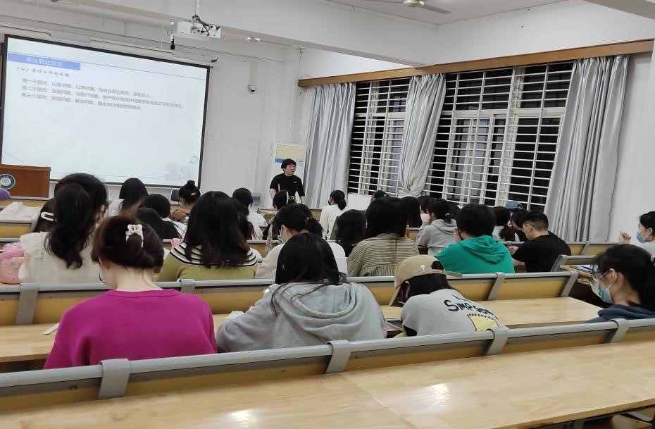 陈莉老师用通俗易懂、风趣幽默的语言让同学们了解了审计实务工作的程序、重点与注意事项,为同学们后续的审计学习与审计方向就业提供了很多宝贵经验。