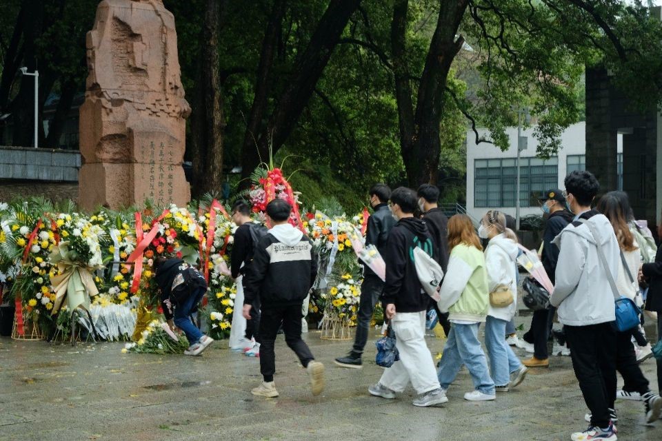 在霏霏细雨中,管理学院团委学生会全体成员到达施洋烈士墓后一起向烈士鞠躬致敬、献花,默哀,周围绿荫满园,安静庄严。同学们了解到施洋革命先辈的生平事迹,感受到革命反动派的残酷,我们今天的幸福生活都是无数革命先辈用鲜血换来的。烈士永生,浩气长存,他们永远活在我们的心中。