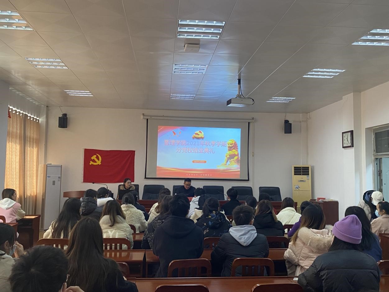 2021122日中午,管理学院在5506举行2021年秋季学期分党校结业典礼,管理学院党委副书记雷长生、分党校班主任罗兰、学院秋季学期分党校学员代表参加,典礼由雷长生主持。