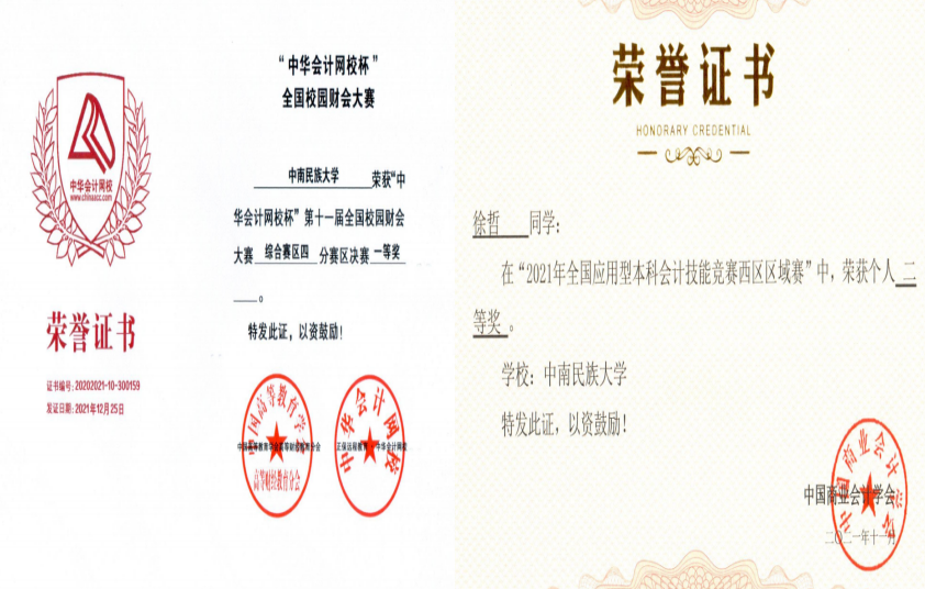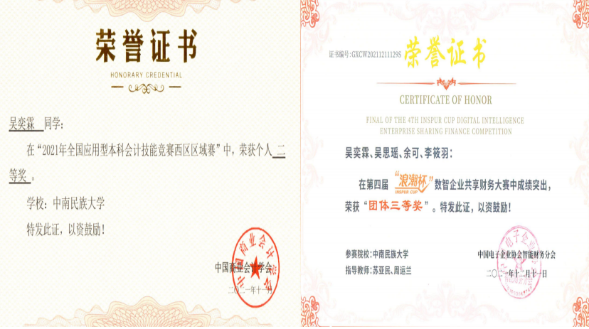 财管专业学生获“中华会计网校杯”全国校园财会大赛获分赛区决赛一等奖、全国应用型本科会计技能竞赛区域赛二等奖、第四届“浪潮杯”数智企业共享财务大赛全国总决赛“团体三等奖”。尤其是中国电子企业协会主办、南京审计大学社会审计学院承办、山东浪潮铸远教育科技有限公司提供技术支持的“浪潮杯”大赛,具有较高的智能财务专业含金量。该比赛以“汇智、融合、引领”为主题,旨在推动和促进教育科研领域资源的汇聚流通和共享开放,提升数字经济时代背景下学生对智能财务系统的运用能力,助力数字经济时代智能财务人才培养。