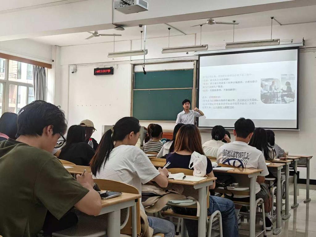 在授课过程中紧紧抓住同学们的注意力,将理论知识与企业实际数据紧密结合,打破生产决策分析过程的复杂壁垒,讲“活”了课堂。详实的数据案例,逐步分析;清晰的解题思路,层层递进;热烈的课堂互动,积极活跃。课堂上的学习不仅充实了同学们的企业管理理论知识,还拓宽了大家对企业