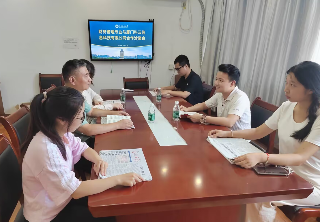 双方洽谈关于2025年“科云杯”全国大学生财会职业能力大赛参赛事宜。该赛事能激发学生学习财会知识的兴趣、提高学生对财会知识的应用能力,培养和提升学生业财税信息处理技能、智能化财务应用技能、综合素养和团队协作创新精神,展示财会专业课程教学改革与实践创新成果。厦门科云信息科技有限公司拟为财务管理专业参赛学生提供模拟训练账号,提供在线问题答疑。双方期待以良好的专业竞赛成绩助力一流专业建设和数智化财务管理人才的培养