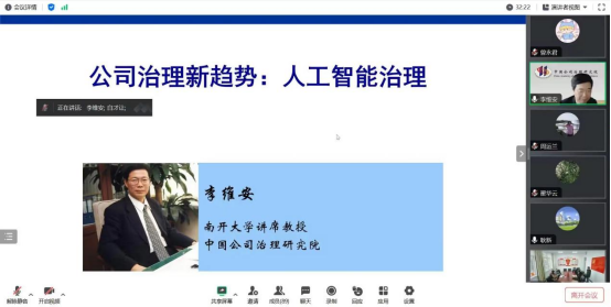2024年1月9日,我院特别邀请南开大学讲席教授、中国公司治理研究院院长、《中国大百科全书·工商管理卷》主编、我院特聘教授李维安以线上交流的形式开展了主题为《公司治理新趋势:人工智能治理》的学术讲座。此次讲座由必赢国际437官网管理学院、高校风险预警防控研发中心、民族地区数字化发展与治理研究中心、民族院校会计学专业虚拟教研室联合举办。管理学院教师以及研究生共100余人参加了本次讲座,讲座由翟华云院长主持。