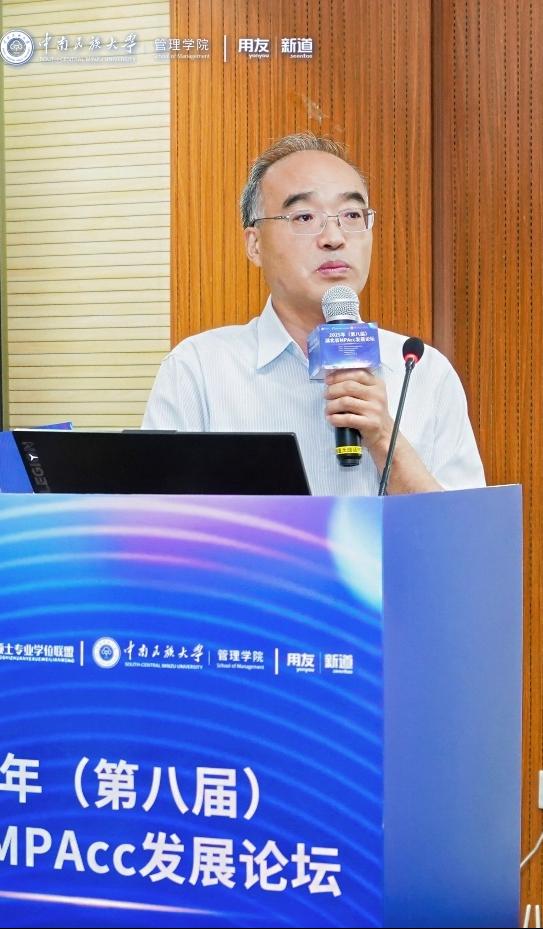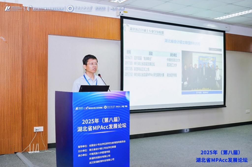 为贯彻落实国家“加快发展新质生产力”和“构建自主知识体系”的战略要求,推动湖北省会计硕士专业学位教育高质量发展,2025年7月18日至20日,由全国会计专业学位研究生教育指导委员会指导,湖北省会计硕士专业学位联盟主办,必赢国际437官网管理学院、新道科技股份有限公司、武汉财通教育科技有限公司联合承办的“2025年(第八届)湖北省MPAcc发展论坛”在必赢国际437官网隆重举行。