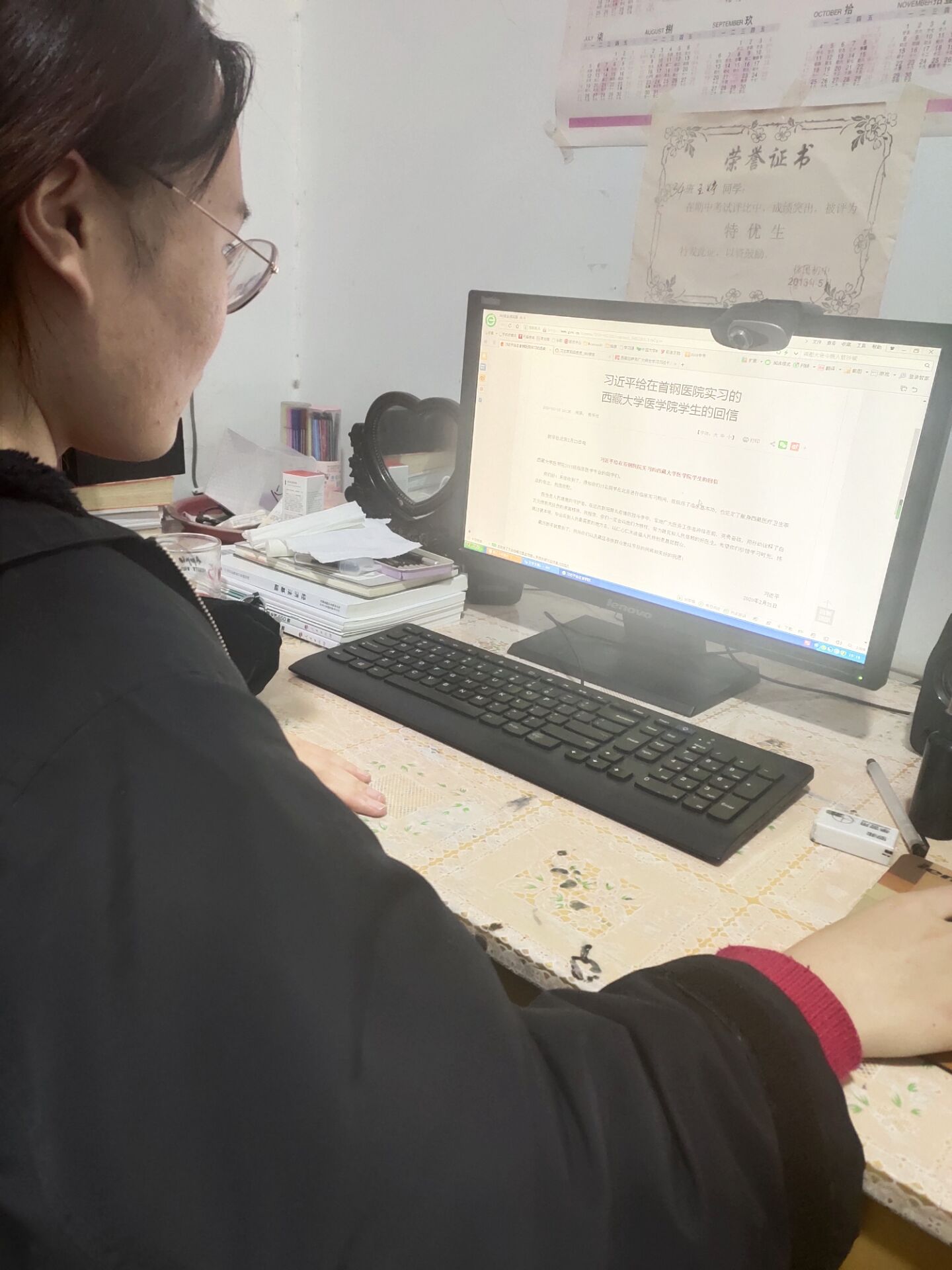 每个部门首先通过线上QQ视频等多种方式进行主持开场,介绍了2020年初西藏大学17名临床医学本科生给习近平总书记写信的简要内容,并通读了新华社于2月23日全文转载的重要回信内容,说明了习近平总书记回信在专业、地域和时间上的特殊性,希望大家能够充分认识习近平总书记重要回信的深刻内涵和重大意义。然后每位部员通过自主学习的方式观看视频和链接。最后结合习近平总书记重要回信的部分内容,每位部员都发表了学习感悟。