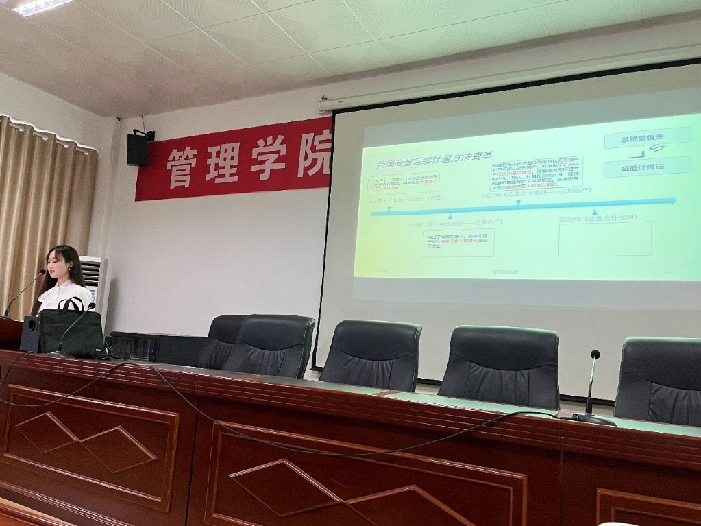 本次汇报会由会计2002班8组同学代表按顺序依次上台做小组专业学习汇报。同学们主要结合新租赁准则、合并报表商誉与减值、新收入准则等会计内容进行探讨,并采用python、powerBI等工具结合具体行业进行估值、投资决策及风险评估分析。各小组准备充分,内容丰富、语言流畅,既有见解看法的表达,也有可视化的呈现。汇报结束后,刘华老师对汇报学习中的专业知识进行总结和完善,同时分析当下考研就业形势,提出期望;卢海涛老师肯定了同学们分组汇报中付出的努力,强调了专业学习的重要性,对同学们汇报的现场表现提出了改进建议,同时结合当前防疫形势对近期学习生活做出了相关要求。