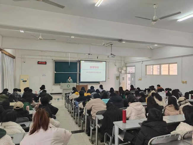 为使管理学院2021级硕士研究生更好、更快地适应新学期的节奏,促进师生间的相互交流及当前疫情防控形势需要,2022年2月24日下午,管理学院在15号教学楼623教室召开了2021级全体全日制研究生年级大会,因生病实习等原因未返校同学也同步参加了线上会议直播。本次大会还邀请到了管理学院党委书记邹反修和分管研究生工作副院长周运兰参加,会议由管理学院2021级研究生兼职辅导员许芳老师主持。