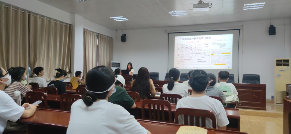 会上,学院勤工负责人为参会人员详细讲解了2022年国奖国励申请表填报的操作流程和填写要求以及注意事项,并且针对现场人员提出的申请表填报中可能存在的问题进行解答。