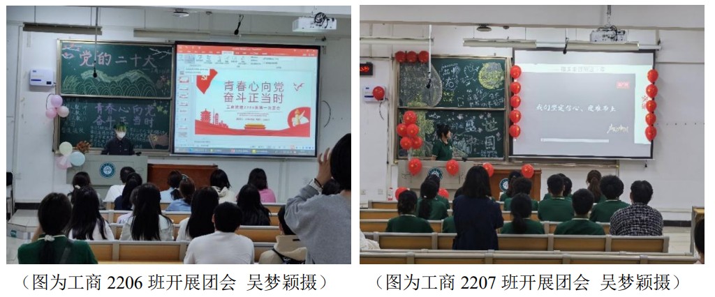 在党的二十大即将召开之际,管理学院各团支部结合中国共产党的百年峥嵘岁月,特别是十八大以来这十年取得的辉煌成就,立足喜迎二十大,奋斗新征程这一关键节点,通过观看视频及讨论的形式,同学们更加全面地了解到中国共产党总结历史,开创未来的决心和毅力。深刻理解”青春心向党、奋斗正当时“的重要意义,纷纷表示要以实际行动迎接党的二十大召开。