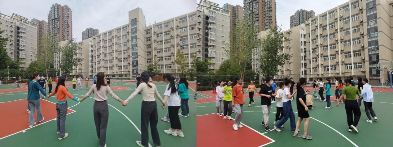 第三场五毛一块男生女生们一起参加,音乐响起时转圈,停止时大家根据规定的数字迅速拉在一起。既加强了不同年级的交流又能凸现此次运动会的趣味主题。
