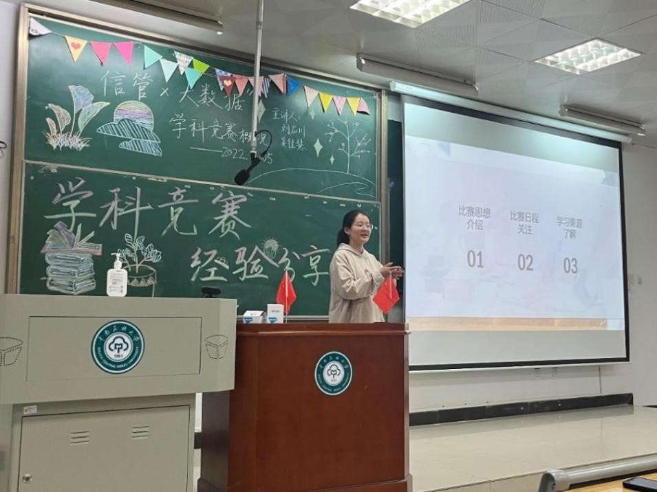 寒风送爽话竞赛,引路启航向未来。为引导本专业学生全面了解相关学科竞赛、提升学科竞赛水平、扩展专业技能,管理学院信息管理专业于202211月连续举办了三场学科竞赛系列分享会。信息管理系杨单老师、杜文华老师、2019级信管专业学科竞赛获奖同学以及2020/2021/2022级信管专业及管理科学与工程大类近200余名同学参加了本次系列活动。