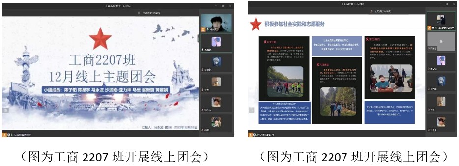 管理学院各团支部于20221218日至21日陆续召开线上团会。团会围绕“疫情期间心理疏导、居家期末复习和诚信考试、返乡行程安全、防范电信诈骗、积极参加社会实践和志愿服务”展开。