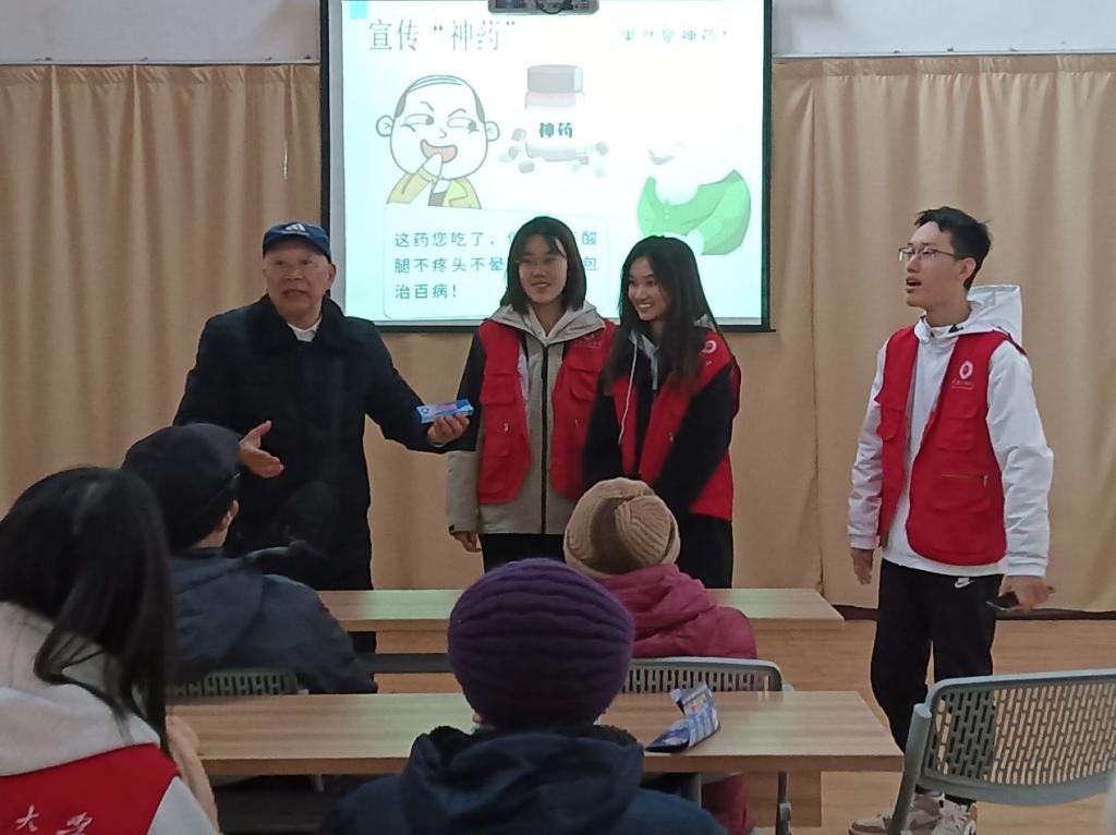 活动现场,志愿者们配合生动鲜活的典型案例,现场演绎反诈情景,以诙谐幽默的方式、创意十足的剧情、贴近生活的台词和精彩生动的表演,揭示各种骗局类型,让在场老人深刻认识电信诈骗的严重危害,引导其加深对诈骗手段的了解,进而提高反诈意识。“这些诈骗好吓人啊,防不胜防,多亏这些小志愿者,让我们更了解这些诈骗,感谢你们,蛮有用。”在活动尾声的教授国家反诈APP的使用方法环节,一位刘姓奶奶拉着志愿者的手如是说。