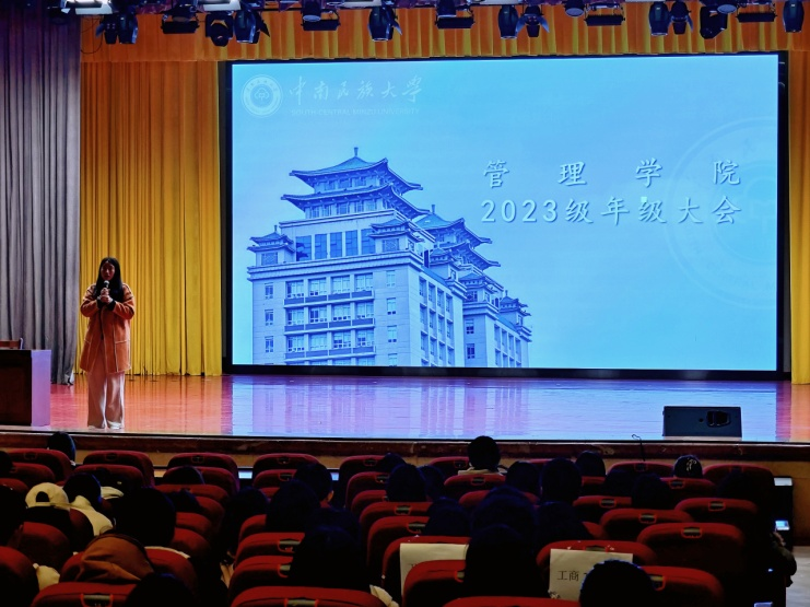 11月29日晚,管理学院2023级在学术会堂召开年级大会,管理学院党委副书记李明亮,2023级辅导员李丹,2023级兼职辅导员出席年级大会,学院2023级全体学生参加。