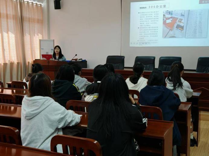 会议伊始,冉秀华从岗位申请流程、岗位注意事项、薪资构成三个方面进行详细的讲解,并对新学期的勤工助学工作提出了新的要求和期望。她表示,勤工岗同学们要严格按照学院协调好的排班表按时就岗上班,注意值班纪律,做好岗位本职,有冲突事项提前请假。勤工助学不仅是学生自我锻炼、提升能力的平台,更是学院人才培养的一部分。