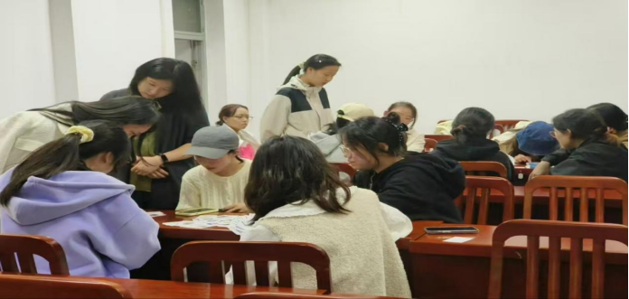 在主持人介绍完会计扑克比赛规则后,选手们进行第一阶段赛前热身。在此环节中大家互相帮助理解比赛规则,刘华老师等三位老师也亲切指导并纠正选手们的知识误区、与选手们讨论相关知识,这在提高选手们竞争意识的同时更体现了学生间友爱互助以及师生间亲密沟通的氛围。到了正式比赛,选手们展开激烈竞争,现场气氛热烈非凡。赛场中,摆放着一张张整齐的桌椅,参赛者们围坐四周,全神贯注于手中的会计扑克。每一位参赛者的神情都严肃而认真,眉头时而紧皱,时而舒展,眼睛紧紧盯着扑克上的会计科目,脑海中迅速回忆着,就像专业的棋手在对弈中思考着下一步的走法。现场不时传来讨论声,有的是小组内成员轻声核对数据,有的是对规则理解产生分歧的短暂交流,声音交织在一起,却丝毫不显杂乱
