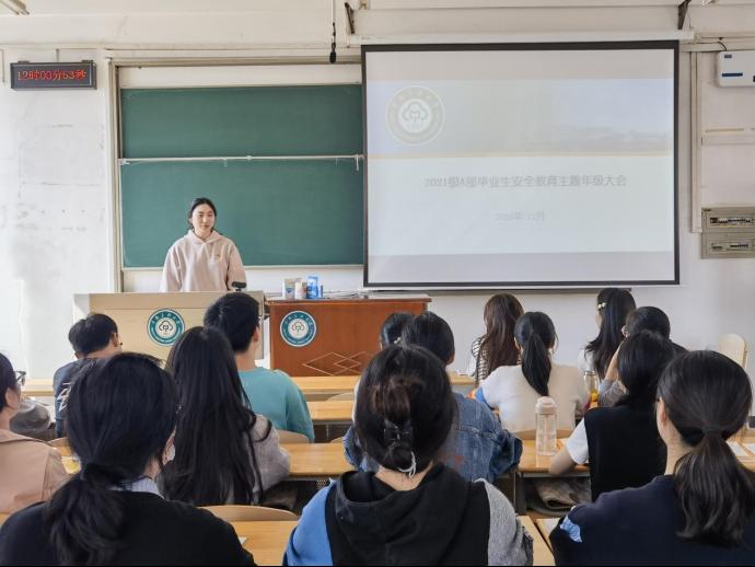 本次年级大会是2021级A部结合学生学习生活实际发展节点、为深化学生安全意识的学生工作常规活动,旨在做好毕业生备考就业行前安全教育,时刻意识到风险并将风险防范前置化,为本年级毕业生顺利升学就业保驾护航。