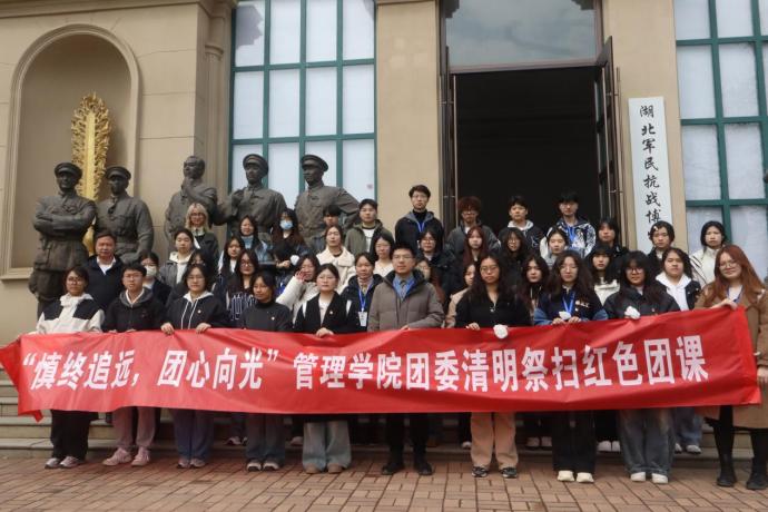 在活动的尾声,全体师生来到了湖北军民抗战博物馆。师生们通过观看历史图片和文物、聆听英雄事迹讲解,深入了解革命先烈为民族独立和人民解放作出的巨大牺牲。本次活动分别由管理学院团委、团委宣传部和志工部主办、承办和协办,通过精心策划与组织,将祭扫活动与红色教育、主题团课、文化传承紧密结合,引导青年学子在缅怀历史中汲取奋进力量,以实际行动践行“强国有我”的青春誓言。