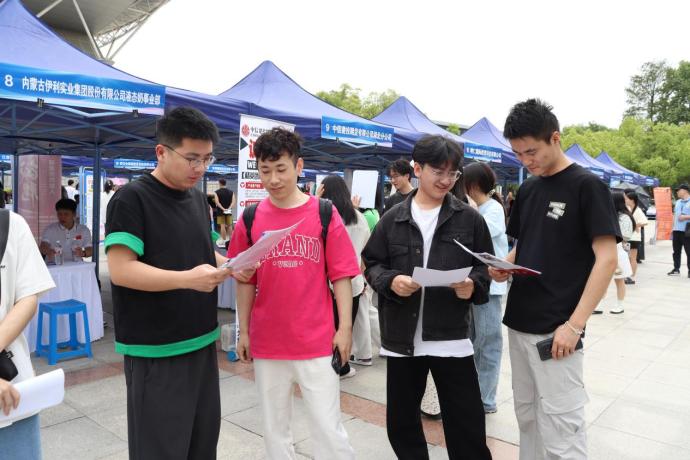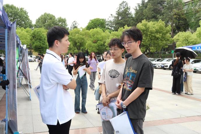 南湖畔双塔凌云,百企聚揽生纳才。4月16日下午,由中共洪山区委、洪山区人民政府、必赢国际437官网主办,管理学院联合承办“就业嘉年华”——洪山区2025年“学子聚汉”工程必赢国际437官网经管专场招聘会在学校体育馆前广场顺利举办。该活动共有72家知名企业参加,涵盖金融、互联网、医药等多个行业,提供了上千岗位,吸引了近千名应届毕业生及大三学子参加。学校招生就业处相关领导到场指导,管理学院班子部分成员、辅导员、班导师陪同学生参与此次春招。