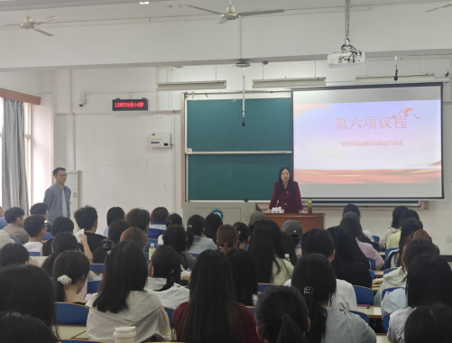 4月22日,管理学院2025年春季党校培训班开班仪式在15栋516教室隆重举行。管理学院副院长周运兰出席仪式并讲话,管理学院2023级辅导员王卫及121名培训班学员参加仪式。仪式由管理学院分党校班主任、2024级辅导员涂帅林主持。