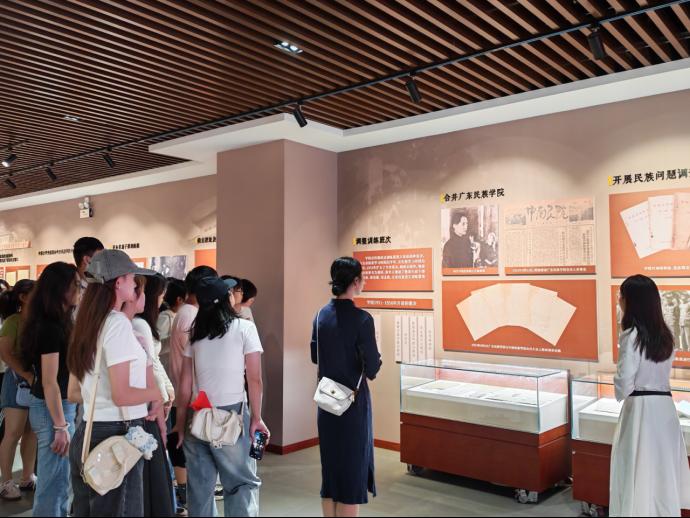 参观过程中,新生认真聆听讲解,仔细观看文字、图片和实物等介绍,特别是了解到白瑞西教授、吴泽霖教授、严学宭教授等老一辈“民大人”事迹后,他们内心满是触动。工商管理类2502班许博勋同学说:“漫步校史馆,泛黄的照片、深深镌刻于石头上的校训,串联起学校的岁月荣光。前辈的奋斗故事让我热血澎湃,也更懂今日校园时光的珍贵,未来定以他们为榜样,续写新篇。”