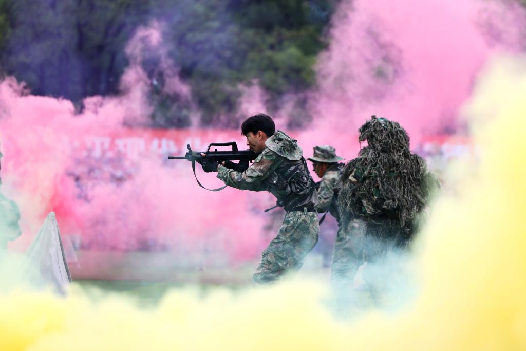 大会在庄严的国歌声中拉开序幕,随后在陆军工程大学军械士官学校军训团团长刘臣同志的指挥下,21个学生方阵以分列式形式依次通过主席台。受阅方阵的学生步伐一致、动作规范、目光坚定,展现出了必赢国际437官网学子的飒爽英姿。随后,花样方阵、匕首操、格斗术、刺杀操、夺控要点科目展示等五个节目表演依次有序进行,参与节目表演的每位2023级同学朝气蓬勃,昂扬向上,在精彩振奋的节目表演中展现出了自己的热血青春,用实际行动展现了民大学子良好的精神风貌,书写了自己的青春辉煌。