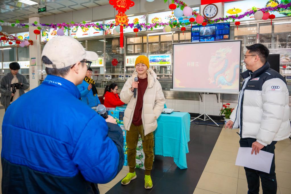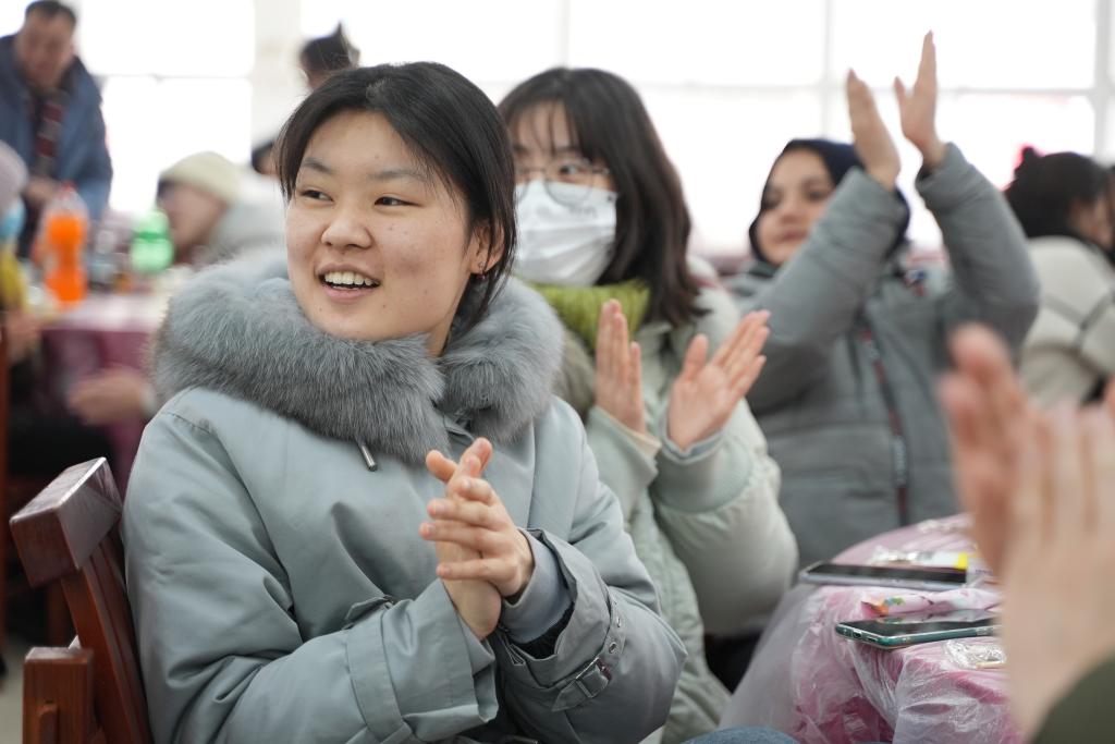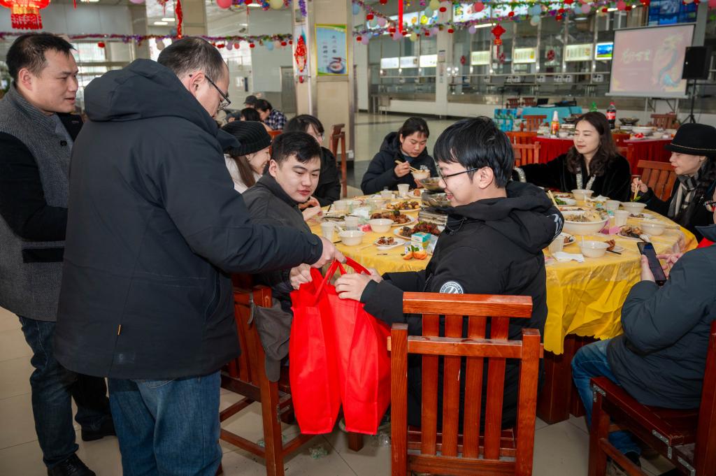 当天学校共有180余名本预科生、研究生、留学生参与活动。学校为每名留校学生准备了一份新年大礼包,里面包含零食礼包、坚果礼盒等春节慰问品,以及春节餐券和学生寒假安全“小贴士”。在团拜会现场,学校还精心安排了“你比我猜”“成语接龙”“断句挑战”等趣味小游戏,为积极参与互动环节的师生现场发放奖品,团拜会现场欢声一片,精彩纷呈。