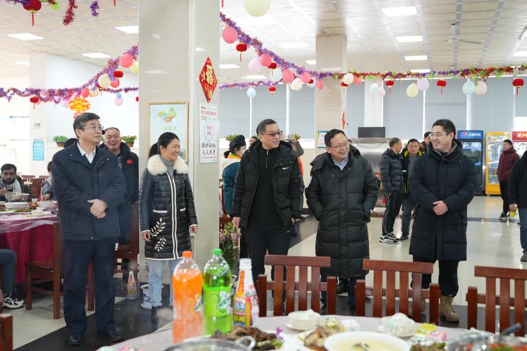 参加团拜会的还有学校党政办公室、宣传部、学工部、保卫部、校团委、教务处、后保处、国际处等职能部门负责人,以及各学院领导、老师。出席活动的校领导和教师们与学生共同举杯恭贺新春,共同祝愿学校未来发展越来越好。在欢快的音乐声中,留校师生们品尝着美食佳肴,分享着喜事趣事,互相送上美好的祝福。