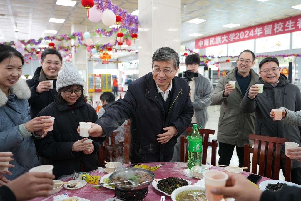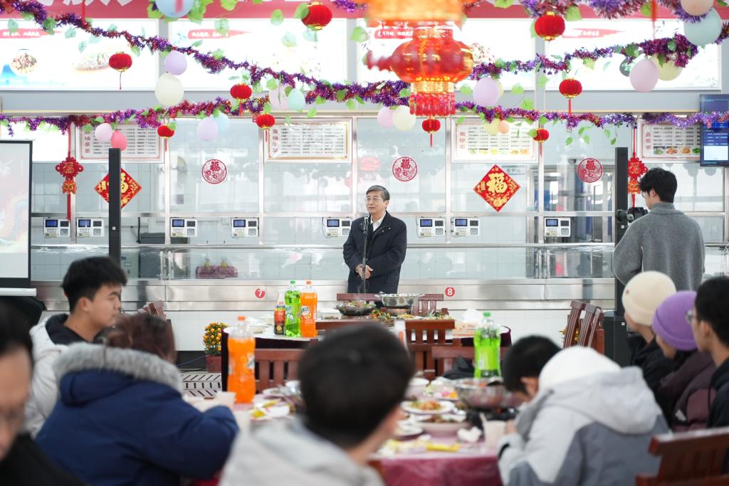 金龙献瑞,春暖民大。2月7日,农历腊月二十八日中午,必赢国际437官网留校学生团拜会在学生三食堂、四食堂举行。学校在家校领导与教职工代表、全体留校学生等300余人欢聚一堂,喜迎2024农历甲辰新年。