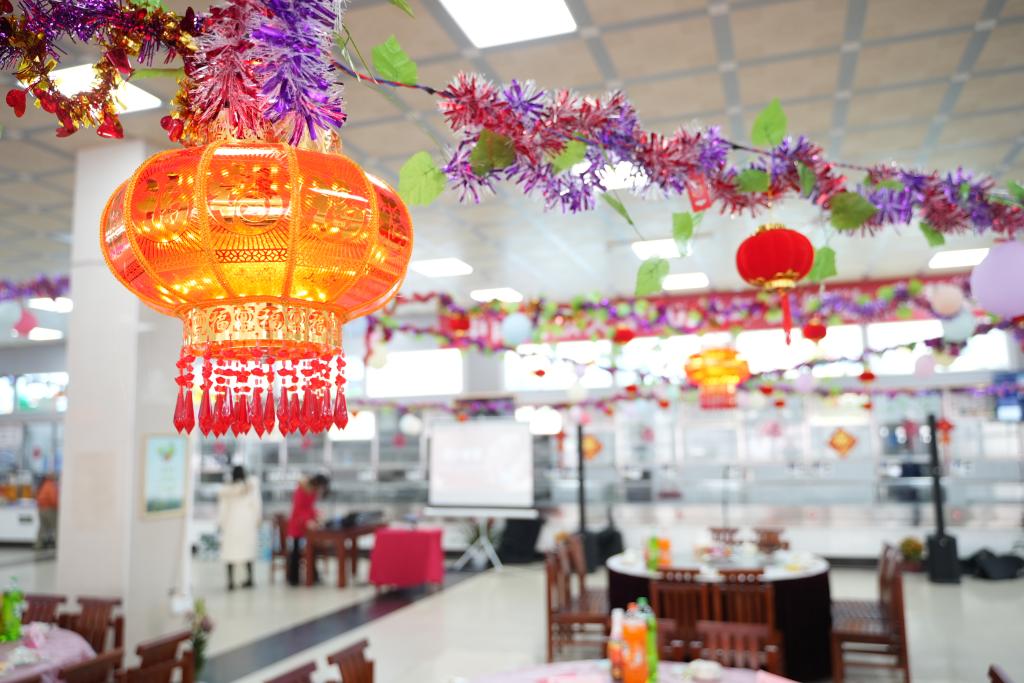 学生三食堂、四食堂内张灯结彩,热闹非凡。喜庆的灯笼、响亮的电子炮仗、美丽的中国结和随处可见的“福”字窗花,无不烘托出欢乐祥和的节日氛围,让初春的学校充满了暖意与温馨。