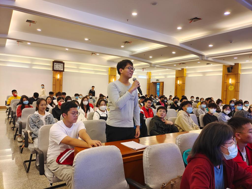 第一场讲座伊始,余老师通过让同学们相互食指点手掌的小游戏进行暖场热身,随后,余老师通过“小心委,大作为”为主题以点带面展开讨论,通过观看视频、数据等方式让各位心理委员认识到心理委员一职在班级的和同学中的重要意义,提出“用生命影响生命”的核心要求,并与各位心理委员共同讨论心理委员的特质与基本职责。在余老师的带领下,同学纷纷举手发言,现场掌声不断,气氛热烈。