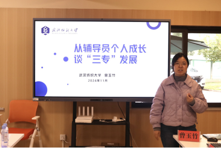 曾玉竹以《从辅导员个人成长谈“三专”发展》为题,阐述了辅导员个人成长与专业发展的三维路径:专业化成长需掌握处理学生实务的技能与方法,拥有自己的工作方法论,善于思考、敢于行动;职业化塑造需发掘个人特长,发挥优势,扎实做好日常工作,发挥团队协同作用,提升专业技能与拓宽职业视野,加强理论素养积累;向专家化迈进则需在稳固知识结构与专业素养的基础上,增强专业素养的可迁移性,引领辅导员队伍建设,侧重理论研究。