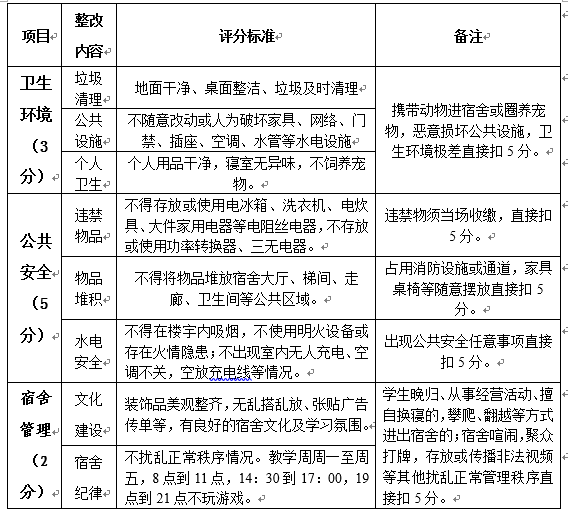'; } else{ document.getElementById(PLTS[cur1].portletId).innerHTML=response; } } catch(e){} var regx=new RegExp(']*?>([\\s\\S]*?)<\\/scr'+'ipt\\s*>|]*?\\/>','img'); var arr; while((arr = regx.exec(response)) != null){ if(arr.length){ if(arr.length >=2){ var regx2 = new RegExp("]*?\\bsrc=\\s*('[^>]*'|\"[^>]*\"|[\\S]*)\\s*\\/?>",'im'); var srcArr=regx2.exec(arr[0]); if(srcArr!=null){ var src= srcArr[1]; if(src){ if((src.charAt(0)=='"') || (src.charAt(0)=="'")){ src=src.substr(1,src.length-2); } loadScript(src); } } else{ execJavaScript(arr[1]); } } } } } cur1++; loadps(); } } function loadScript(s){ try{ var sc=document.createElement('script'); sc.type='text/javascript'; sc.language='javascript'; sc.src=s; document.body.appendChild(sc); }catch(e){} } function execJavaScript(s){ try{ var sc=document.createElement('script'); sc.type='text/javascript'; sc.language='javascript'; sc.text=s; document.body.appendChild(sc); }catch(e){} } window.onload=loadps; 首页 部门概况 部门简介 部门领导 机构人员 学工资讯 学工动态 学院风采 通知公告 规章制度 相关下载 思政教育 党旗领航 铸牢教育 队伍建设 网络思政 学生管理 安全教育 学生团队 相关制度 日常管理 学业发展 中心动态 学风建设 评奖评优 学生团队 学生资助 资助动态 政策文件 学生团队 工作通知 心理教育 动态信息 咨询服务 心理活动 关于我们 宿舍管理 中心动态 学生团队 通知公告 宿舍育人 国防教育 军事训练 征兵入伍 军事天地 民大迷彩 当前位置: 新首页 -> 宿舍管理 -> 通知公告 -> 正文 必赢国际437官网学生宿舍检查标准 作者: 发表时间:2020-10-02 访问次数: (审核:马进 张志 编辑:陶金 来源:党委学生工作部 上传:李雄平)
