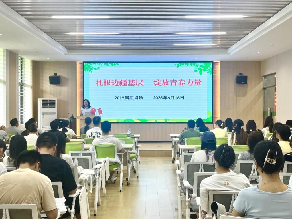 为助力学生明确职业发展方向,引导学生积极投身边疆基层建设,6月16日,马克思主义学院在“一站式”学生社区总站荷香会客厅成功举办南湖归鸿讲坛——“扎根西部基层,讲好新时代思政课”主题讲座,特邀马克思主义基本原理专业2019届毕业生屈肖洁为马克思主义学院学子分享她扎根边疆、服务基层的心路历程。马克思主义学院党委副书记李建青、学工办副主任金瑶、杨芳副教授及全体研究生参加讲座,讲座由研究生辅导员高海波主持。