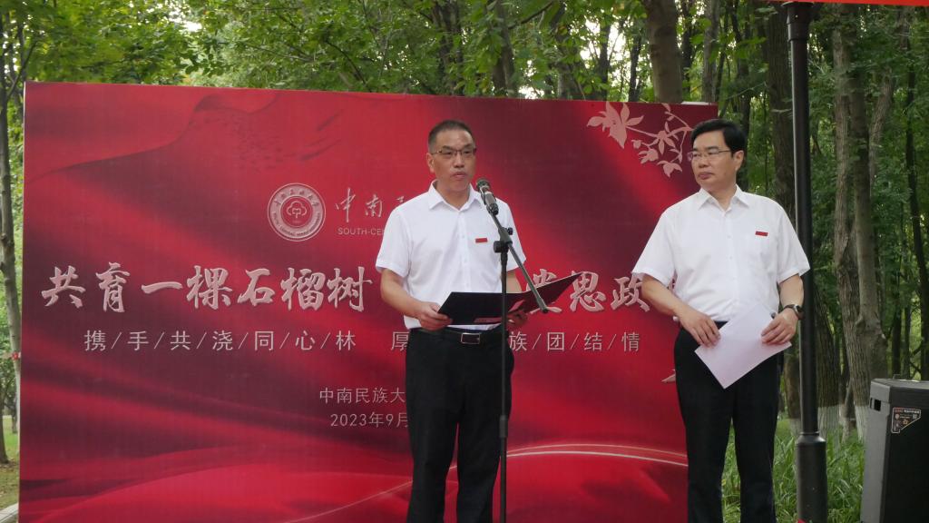 为全面把握习近平总书记关于加强和改进民族工作的重要思想,将铸牢中华民族共同体意识教育融入思政课教学内容,不断夯实当代大学生铸牢中华民族共同体意识思想基础,将“四个与共”“五个认同”意识植根在各族大学生心灵深处,9月8日,来自五湖四海的民大学子们齐聚南湖园石榴园,共育一颗石榴树,共听一堂思政课。