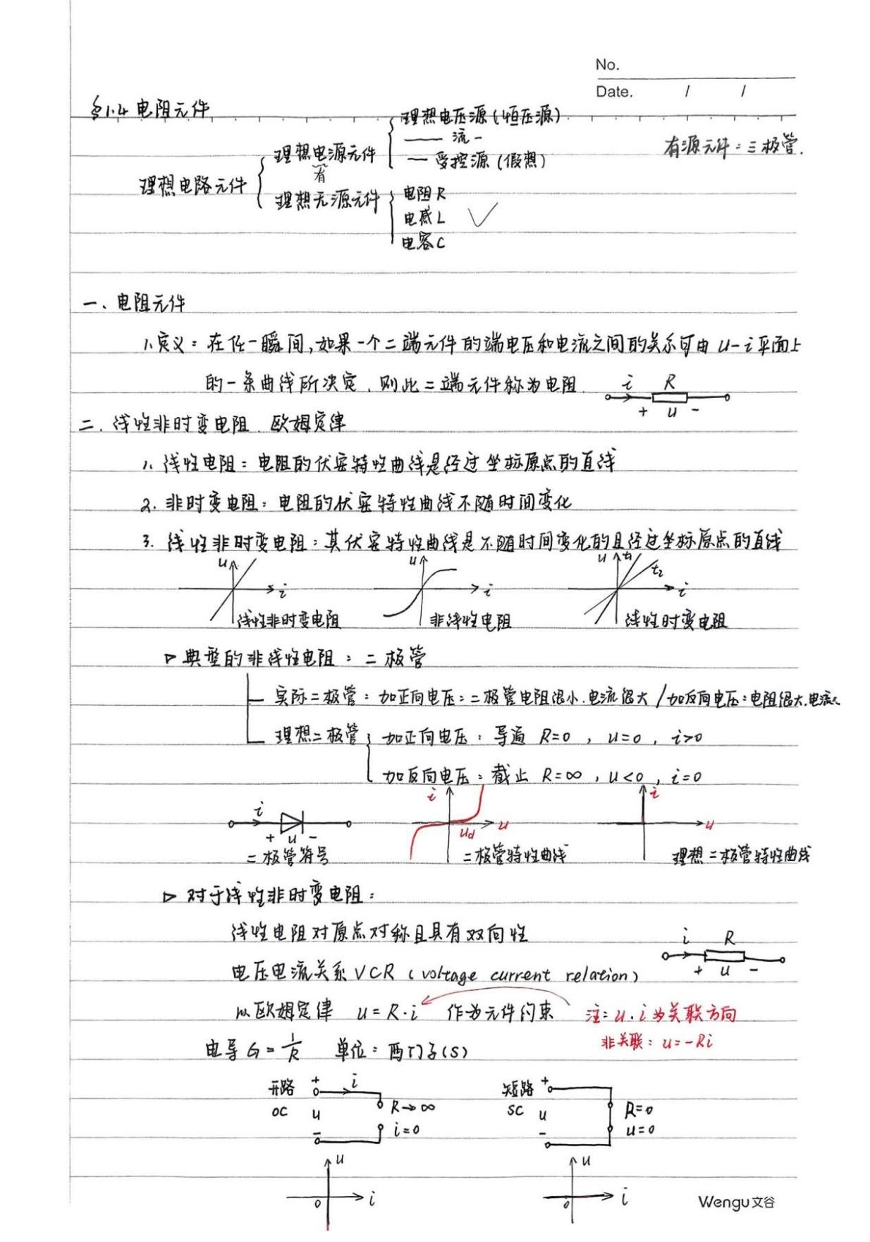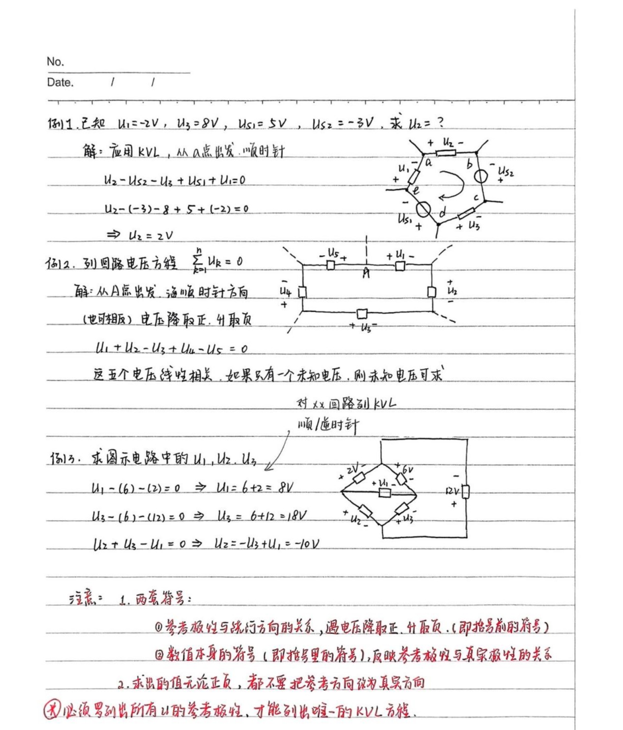每一道例题的推导过程,都如同解开精密机械的密码,逻辑严密、步骤清晰。从基尔霍夫定律到戴维南定理,这些笔记不仅是知识的总结,更是对电路世界秩序与规律的探索。