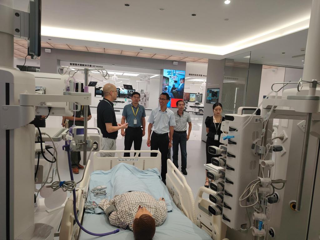在迈瑞相关负责人的陪同下,师生团队参观了企业展示中心与研发基地,全面了解从急救设备、智慧ICU到先进骨科和围术期解决方案等一系列创新产品。现场还重点介绍了超声技术从模拟、数字到智能算法的发展历程,生动展示医疗技术与人工智能的深度融合。
