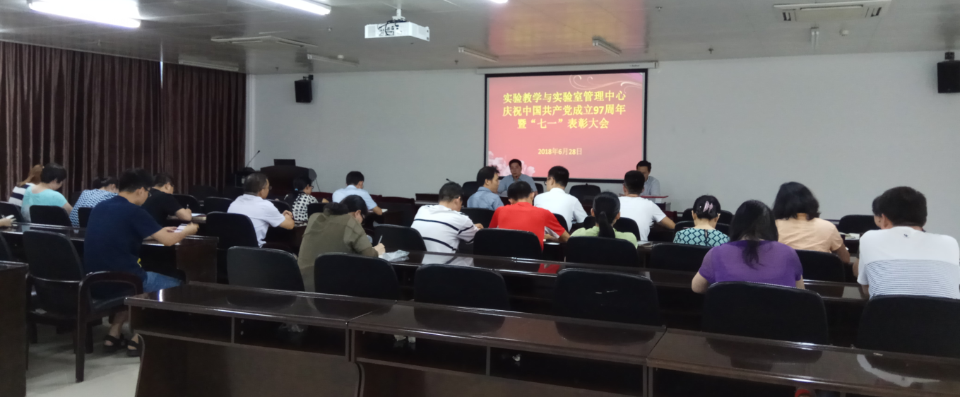 2018年6月28日,实验教学与实验室管理中心集中组织全体党员、办公室主任、分中心负责人和入党积极分子,在16-116会议室开展党的生日主题活动,庆祝中国共产党成立97周年暨“七一”表彰大会。会议由总支书记杨春勇主持。 在会上,杨春勇对一年来的党务工作作了报告。包括党总支成员分工;党总支重要工作部署及落实情况;竞聘上岗、奖惩情况、人事相关的续聘事项;党员发展情况;党费缴纳情况;党内各类先进评比情况;群众普遍关心的重要事项落实情况;党建活动经费开支情况等。 大会表彰了刘黎、马楠、郑禄三位同志。刘黎同志代表优秀党员进行了发言。中心副主任张向明同志宣读了《中共必赢国际437官网委员会实验教学与实验室管理中心总支关于党员示范岗授牌的决定》,并向获奖同志颁发了荣誉证书和理论学习书籍。大会号召全体党员要以习近平新时代中国特色社会主义思想为指导,紧密团结在以习近平同志为核心的党中央周围,真正成为实验中心各项工作的模范带头人,发挥旗帜作用。各支部要充分发挥基层党组织的战斗堡垒作用,深入开展旨在体现党员先锋模范作用的党员示范岗创建活动,以增强党组织的凝聚力、战斗力、吸引力,推动实验中心各项工作全面发展。