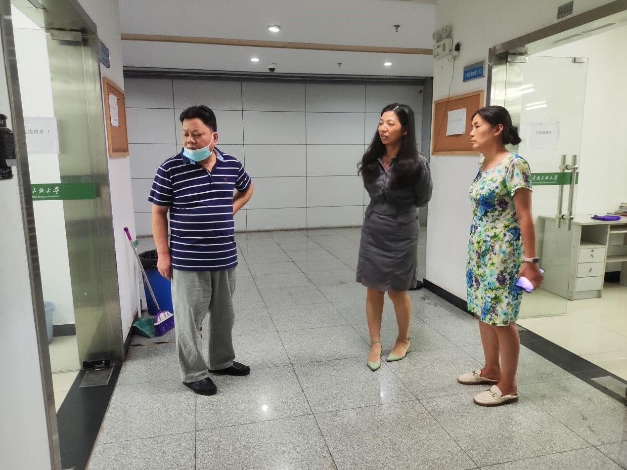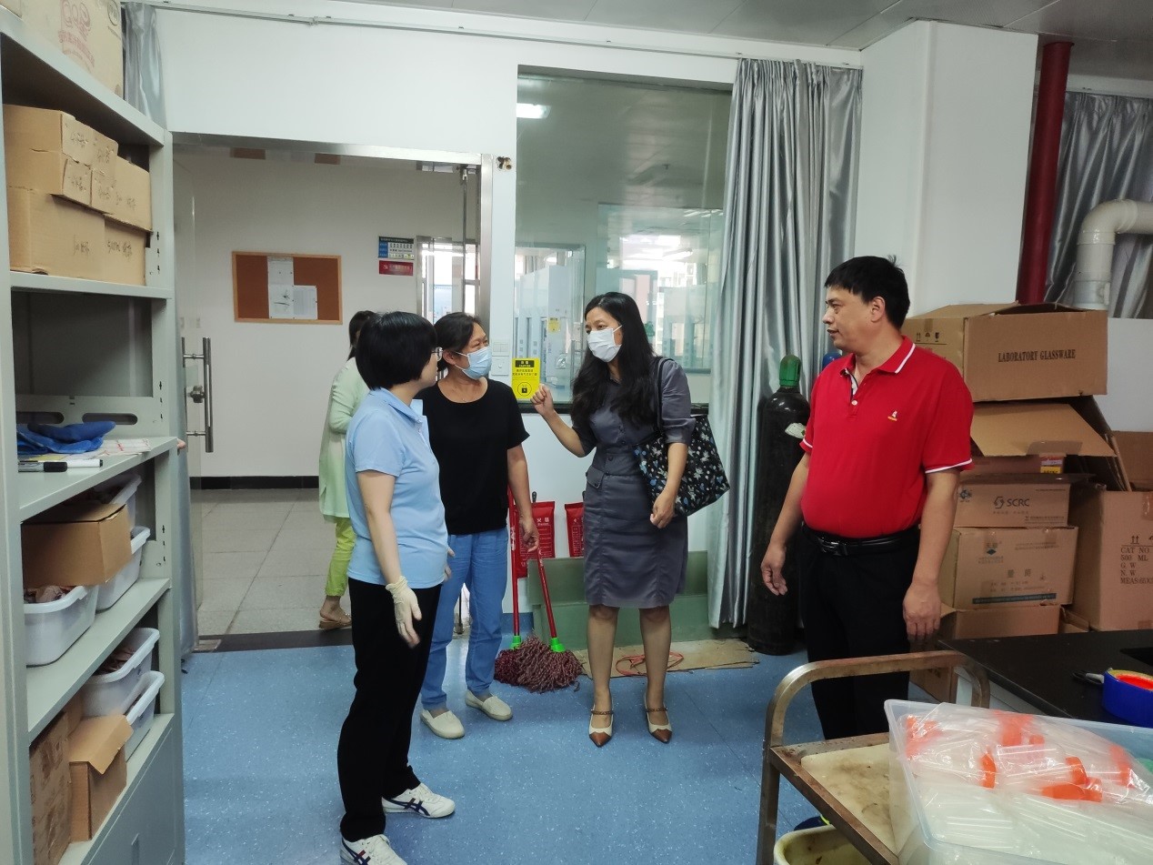 为做好秋季开学各项工作,根据学校工作安排, 2022年8月29日实验教学与工程训练中心组织了开学检查工作,全面排查实验实训开学条件保障情况及实验室安全,确保相关设施、设备运行良好,保障正常开学。中心党总支书记蓝华荣、主任潘泽江带队检查了化生药实验教学中心、经济管理实验教学中心、计算机基础实验教学中心、电子信息实验教学中心、实验动物中心及工程训练中心。