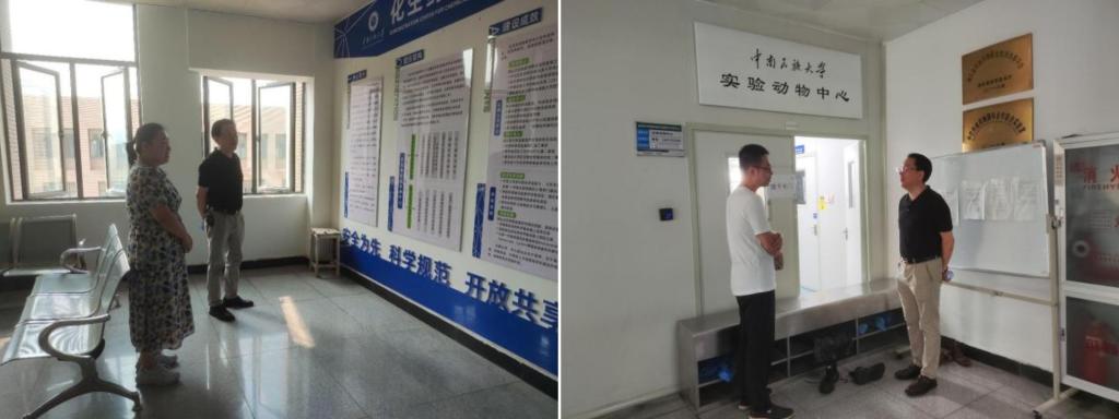 中心党总支书记钟利、副主任陈锟带队依次对化生药实验教学中心、经济管理实验教学中心、计算机基础实验教学中心、电子信息实验教学中心、实验动物中心进行了检查。