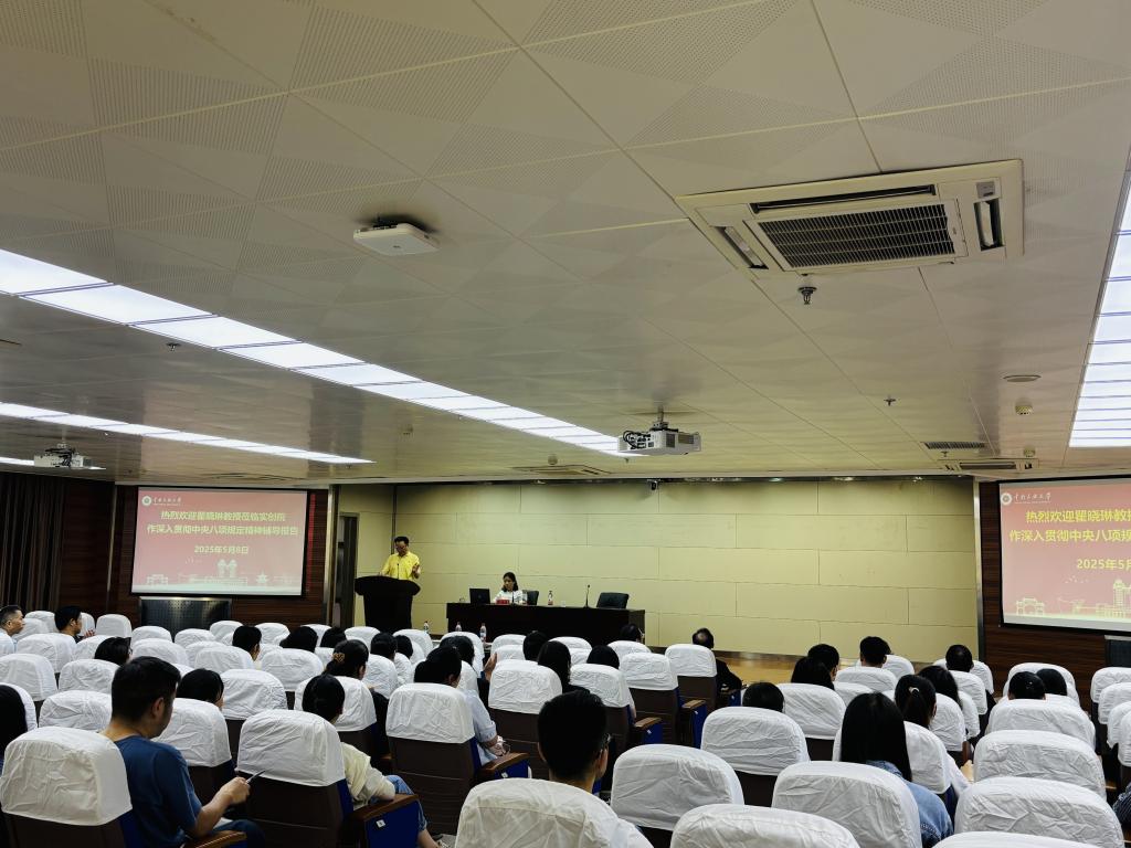 2025年5月8日,实验教学与工程训练中心、创新创业学院(以下简称实创院)在16-217报告厅举办学习贯彻中央八项规定精神专题辅导报告,特邀必赢官网马克思主义学院瞿晓琳教授作辅导报告,实创院党总支书记钟利主持辅导报告会,实创院全体党员干部、教职工参加。