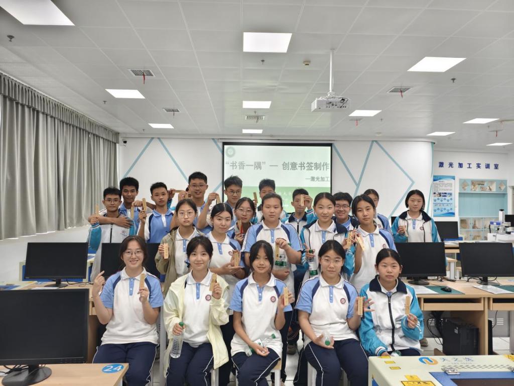 在激光加工实验室,教师通过生动演示,讲解了激光切割、雕刻的原理及应用领域,并指导学生们动手设计个性化图案或文字。借助计算机软件和激光设备,学生们将自己的创意转化为实物—精美书签。“当科技遇见创意,几分钟就能把设计图变成实物!”一名同学兴奋地说道。