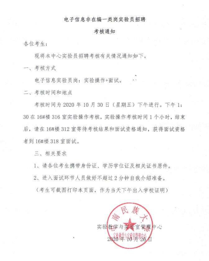 电子信息非在编一类岗实验员招聘 考核通知